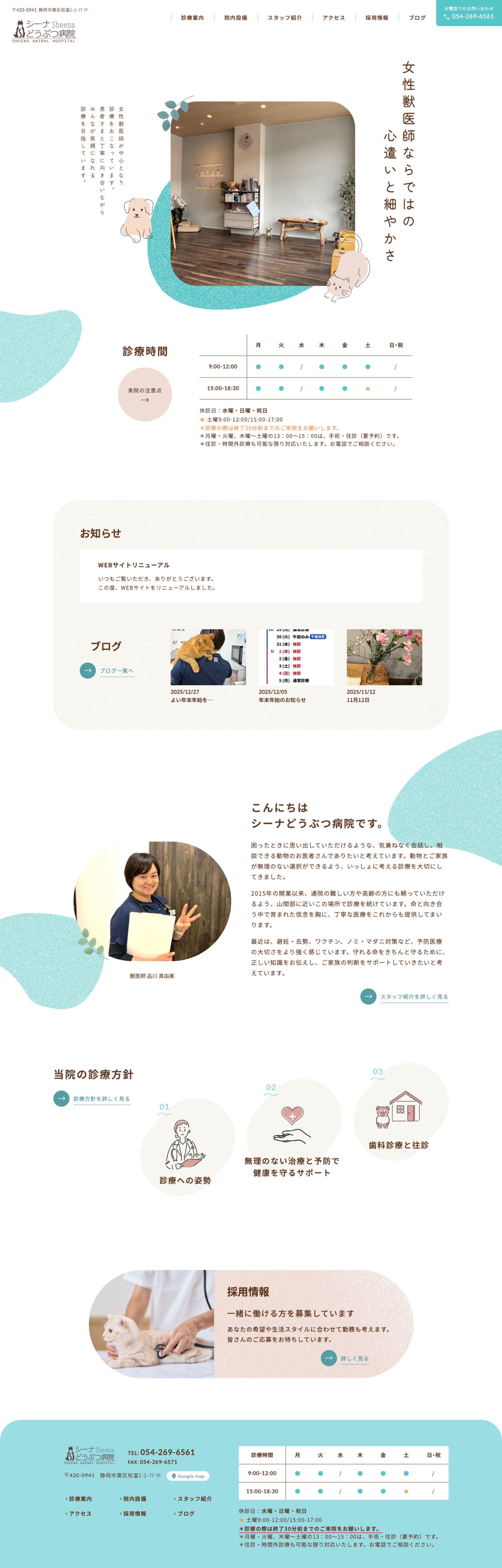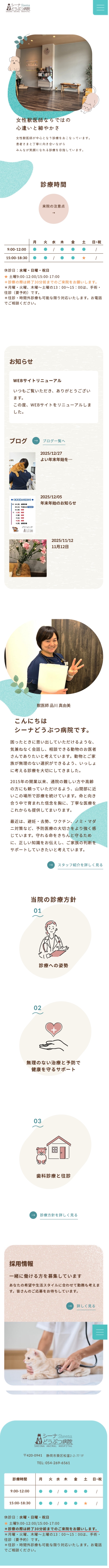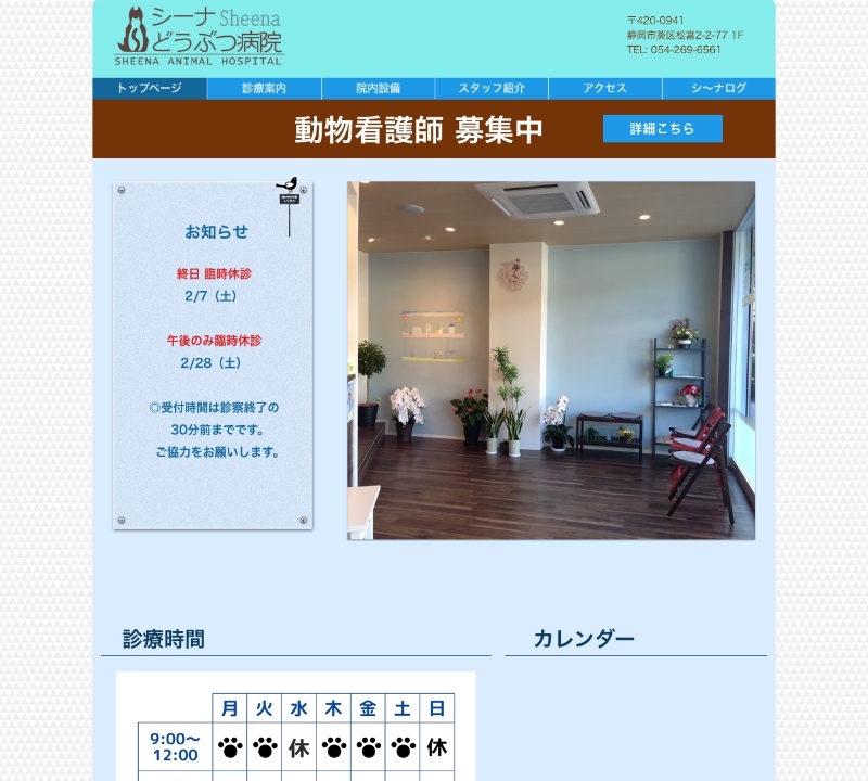 静岡県静岡市のシーナどうぶつ病院様のホームページを制作いたしました。