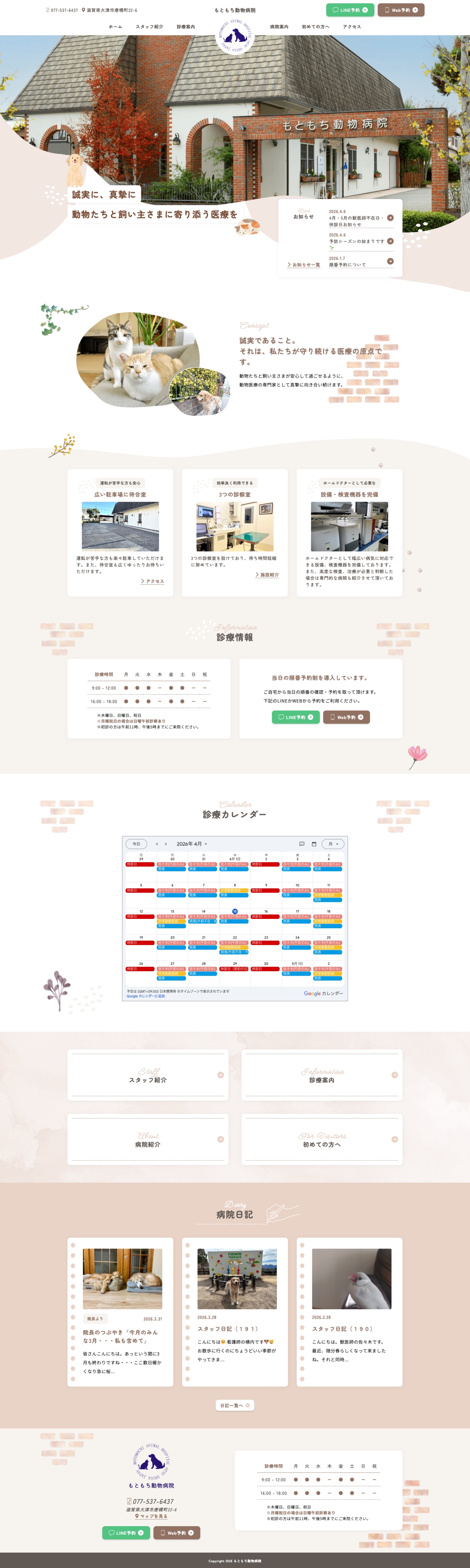 滋賀県大津市のもともち動物病院様のホームページを制作いたしました。